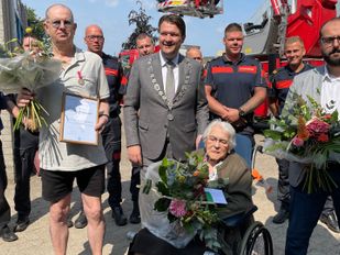 · Burgemeester Han van Midden noemt het bewonderingswaardig dat de mannen met gevaar voor eigen leven het huis zijn ingegaan.