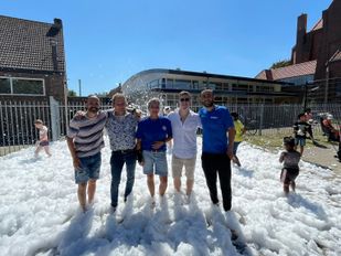 · Mede dankzij de stralende zon en de warme temperatuur was een groot deel van de wijkbewoners woensdagmiddag naar de vernieuwde speeltuin toegekomen.