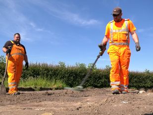 · In Langeweg wordt de grond onderzocht op mogelijke explosieven uit de Tweede Wereldoorlog, voordat er huizen gebouwd worden.