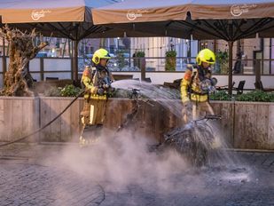 · Ondanks het snelle handelen van de brandweer, kon niet voorkomen worden dat de scooter compleet is uitgebrand.