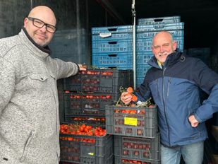 · De tomaten, die beroepsopleider Curio gedoneerd heeft gekregen, liggen opgeslagen in een container die zo snel mogelijk leeg moet.