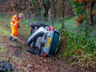 · Een auto is zaterdagmiddag uit de bocht gevlogen op de A58 bij Bergen op Zoom. De auto belandde op zijn zijkant in een ondiepe sloot.