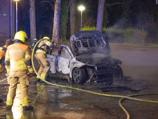 · Toen de brandweer aankwam was de auto al niet meer te redden. Een bergingsbedrijf zal het voertuig op een later moment ophalen.