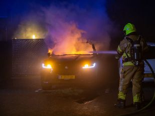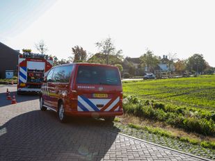 · De politie sluit brandstichting niet uit en zoekt met een politiehond naar sporen.