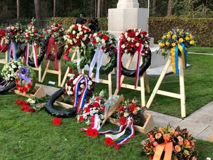 · In plaats van de Russen was er een afvaardiging van de Oekraïense ambassade. Nadat ze een krans hadden gelegd, kregen ze zelfs applaus.