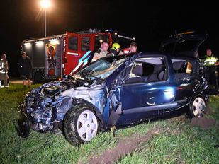 · Rond half een 's nachts raakte de Renault Clio van de weg, om vervolgens via het talud in het water te belanden.