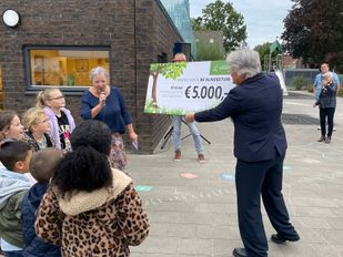 · Na de gewonnen tekenwedstrijd van Sjors Sportief en Creatief vorige week, ontving de school woensdag een prijs waarmee ze hun kleuterspeelplein kunnen vergroenen.