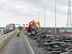 · De betonnen barriers worden dit weekend vervangen door stalen barriers, om de brugconstructie te ontlasten.