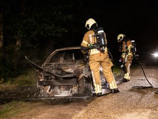 · De brandweer heeft het vuur geblust, maar kon niet voorkomen dat de auto helemaal uitbrandde. Brandstichting wordt niet uitgesloten.
