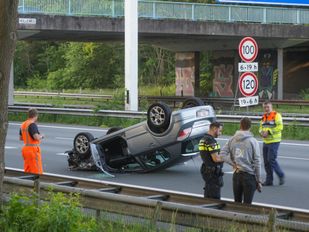 · Wat het ongeval veroorzaakt heeft is nog onduidelijk. De auto die ondersteboven op het wegdek terecht kwam is nog zo’n 150 meter doorgeschoven.