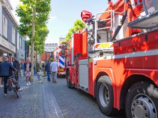 · Omdat het de binnenstad betrof was er met extra voertuigen uitgerukt. Het is soms lastig blussen in en tussen de oude panden.