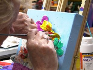 · De Ossendrechtse heeft een systeem ontwikkeld waardoor mensen met een visuele beperking prachtig kleurrijke schilderijen kunnen maken.