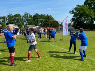 · Voormalig Olympisch bokser Arnold Vanderlyde gaf een clinic aan ouderen op het grasveld van DVO'60, waar een enkele flinke stoot werd uitgedeeld.