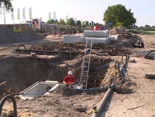 · Met uiterst precisie is een grote overloopput geplaatst in de Halsterseweg in Halsteren. Het is een belangrijke stap in het langdurige project.