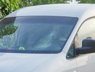 · Doordat de fietser plotseling overstak kwam hij in botsing met de bestelbus en belandde hij op de voorruit.