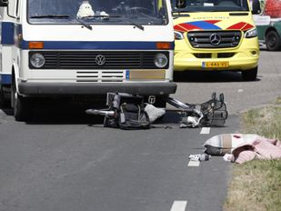 · De man is met een ambulance naar het ziekenhuis gebracht. Het is niet bekend hoe het ongeluk kon gebeuren. De politie doet onderzoek.