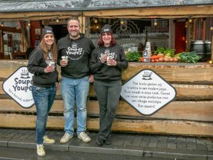 · Vanuit biercafé De Loco aan de Grote markt in Bergen op Zoom wordt gedurende de lockdown verse soep verkocht.