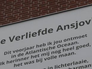· Het gedicht 'De Verliefde Ansjovis' van de Bergse dichter Paul Asselbergs is dinsdagmiddag vereeuwigd in de Soete Veste in Bergen op Zoom.