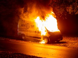 · Begin deze maand werd Peters bedrijfsbus vernield door vuurwerk. Zondag was het wéér raak en ging ook zijn nieuwe bus in vlammen op.