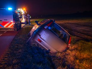 Auto belandt op z’n kop in de sloot bij Halsteren, bestuurder blijft ongedeerd