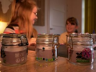 · Zusjes Nora (10) en Tara (9) uit Halsteren knustelen snoeppotjes om geld op te halen voor de ziekte van hun oom Mathijs.