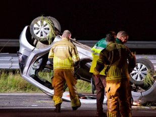 · De man kwam met zijn auto in de berm terecht en botste op twee verkeersborden. De auto belandde vervolgens op zijn kop.