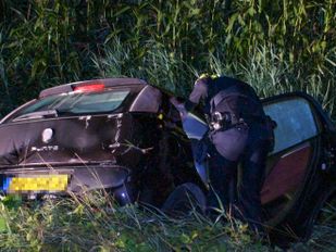 · Een flinke ravage op de Nieuw Beijmoerseweg in Halsteren. Daar schaarde een auto met aanhanger, waarna beide in de sloot belandden.