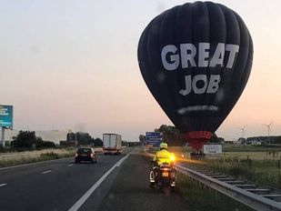 · Dat was even schrikken donderdagavond voor het verkeer op de A17 bij Roosendaal. En voor de inzittenden van een luchtballon.