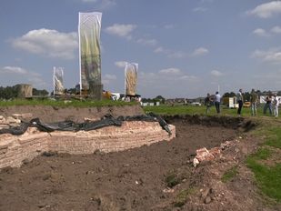 · De werkzaamheden aan het voormalige Kasteel van Wouw zijn donderdagmiddag gestart. Wethouder Inge Raaijmakers en voorzitter Kees Hoendervangers verrichten samen de eerste officiële schep.