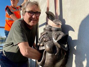· In de Roosendaalse nieuwbouwwijk Stadsoevers zijn dinsdag elf Tullepetaonse waterspuwers geplaatst. Leon Vermunt ontwierp de bronzen koppen.