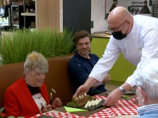 · Bewoners van de Bosgaard krijgen een aspergandel en een 3d-geprinte asperge aangeboden in het kader van ProefMei.