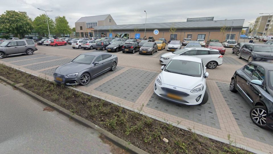 Het parkeerterrein bij de Heulberg wordt na de meivakantie eenrichtingsverkeer. (foto: Google Streetview)