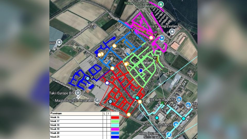 Planning rioolwerkzaamheden Sint-Annaland. (Foto: Gemeente Tholen)