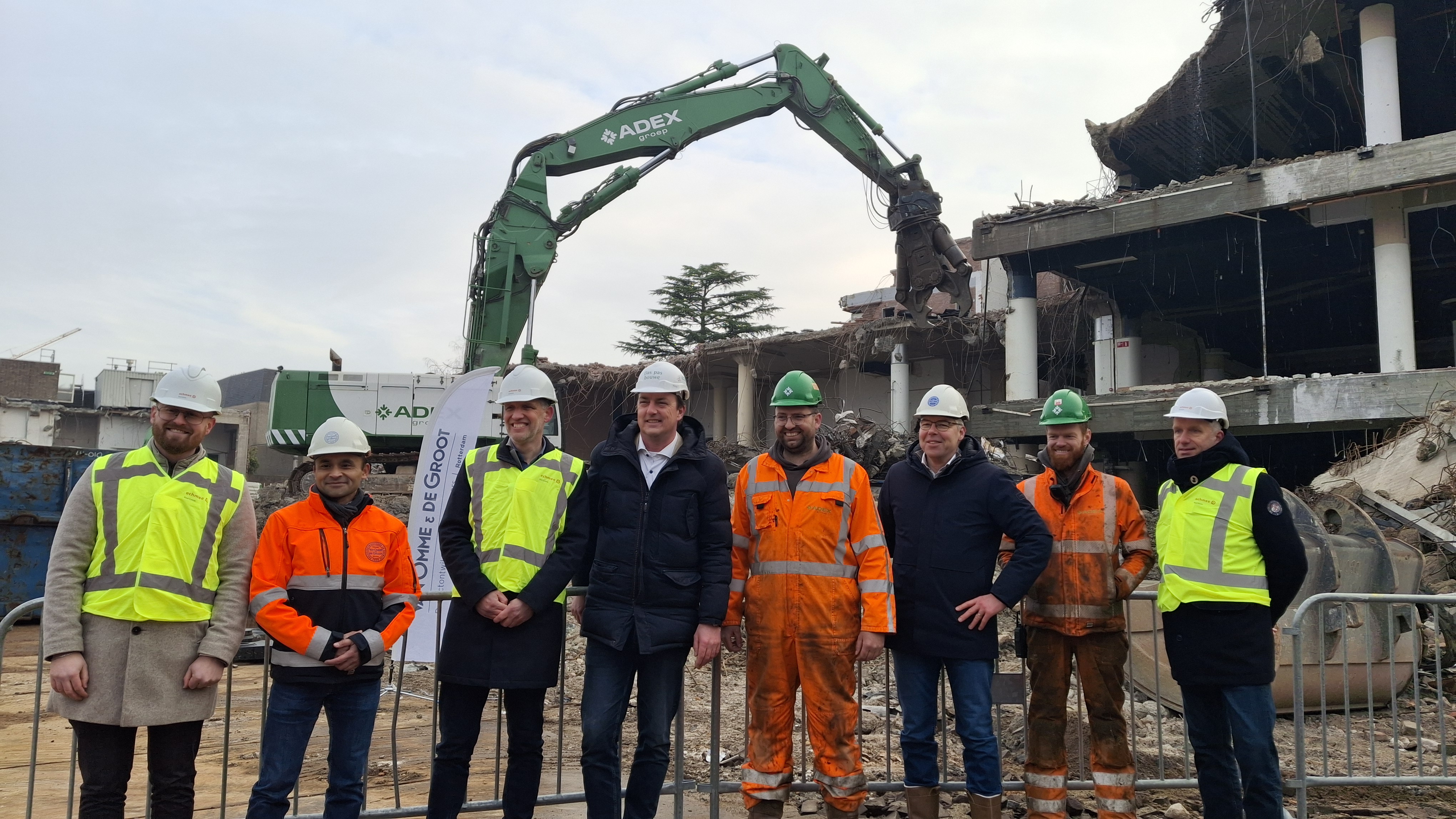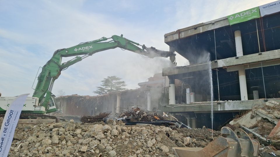 De buitenkant van het pand is al volledig gestript en alleen de betonnen constructie staat nog. Om die ook te slopen staat er sinds vorige week een grote kraan. Aan wethouder De Beer de eer om een eerste deel van de constructie te slopen. Het is de grootste ontwikkeling die nu wordt uitgevoerd in Roosendaal, geeft hij aan. Ter ere van de ontwikkeling krijgen de betrokken partijen een foto van het oud V&D pand. Zo blijft de herinnering levend.