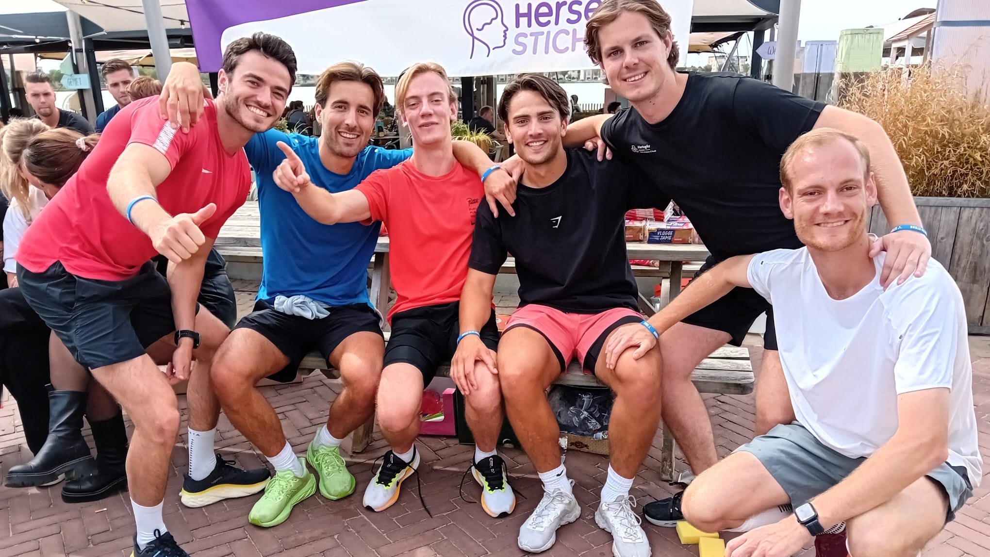 Twee jongens die meelopen en even overgaan op de wandelpas geven aan dat de biertjes van gisteren avond het er niet gemakkelijker op maken. Ze lopen een ronde mee en hoeven nog maar twee kilometer richting het Strandhuys. Vol goede moed zetten ze de hardlooppas weer in.