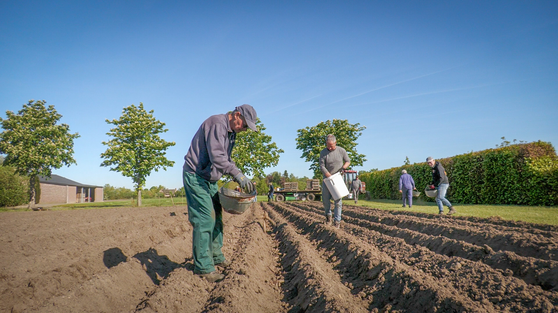 Het werk stopt niet na het planten. “We zijn het hele jaar zoet”, zegt Koeken. “Als deze knollen in de grond zitten, gaan we beregenen. Dan gaan wij onkruid wieden en dan beginnen de bossen bloemen te groeien.” Daarna volgt onderhoud: “We moeten af en toe wel een beetje voeding geven.” Vanaf juni wordt het veld klaargemaakt voor de oogst. “Dan gaan we palen zetten, touwen spannen zodat we de bossen mooi recht omhoog kunnen krijgen.”