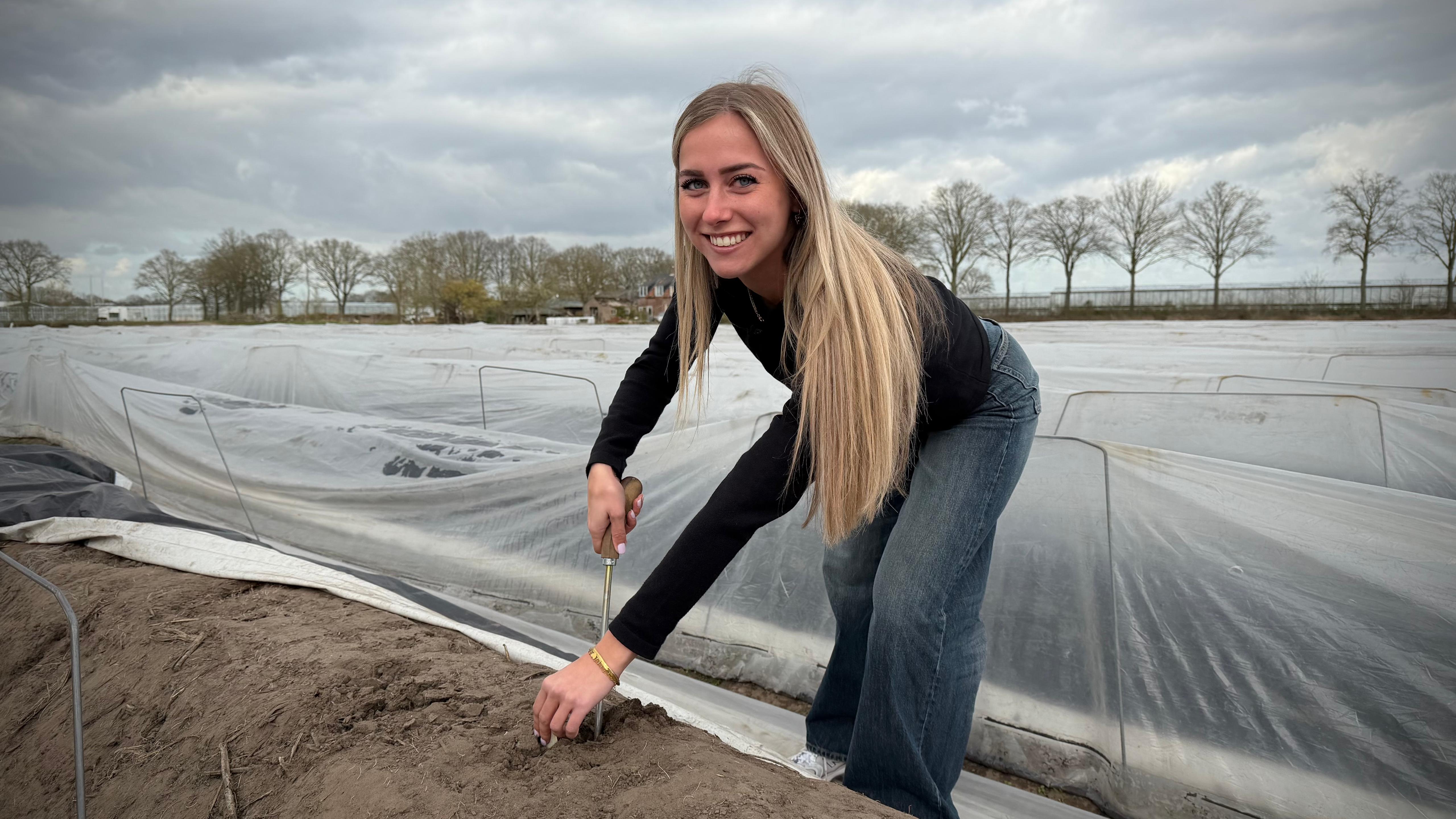Bij De Santspuy in Etten-Leur groeit er dit voorjaar meer dan alleen asperges. Tussen de asperge- en wijnvelden van het familiebedrijf, dat al vier generaties meegaat, rijpt ook een toekomstplan. Dochter Janske Sweep (23) wil het bedrijf van haar ouders graag overnemen in de toekomst. “Het is hier zo leuk dat het niet als werken voelt.”