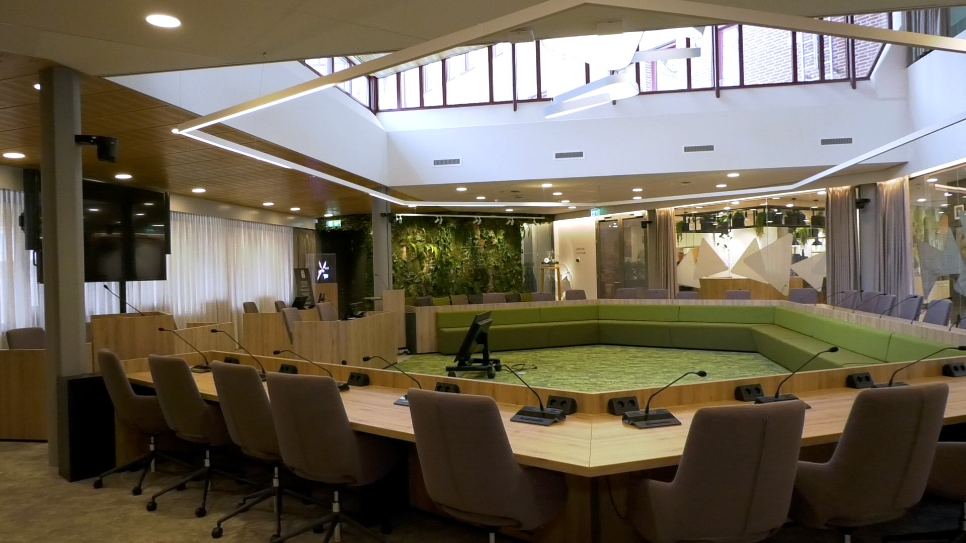 Na maanden van verbouwen is de vernieuwde begane grond van het gemeentehuis van Etten-Leur weer in gebruik. De verdieping onderging een flinke metamorfose, met de nieuwe raadzaal als absolute blikvanger.