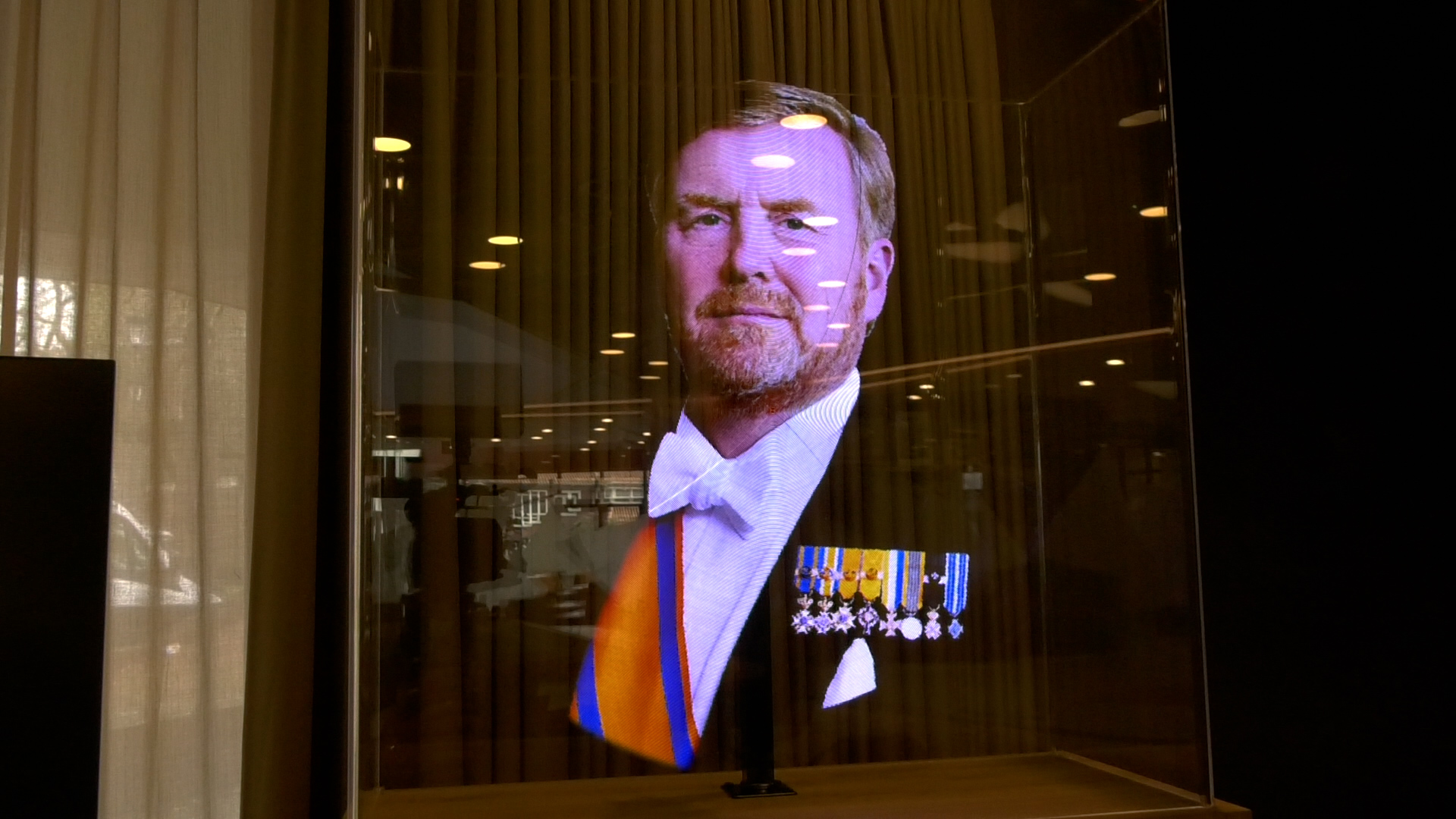 De raadzaal is wel het pronkstuk van de verbouwing. Het heeft een rustige uitstraling met natuurtinten. Daarnaast is er ook een muur met beplanting. Ook heeft Etten-Leur een primeur te pakken. Normaalgesproken hangt of staat er altijd een beeltenis van de Koning. Maar Etten-Leur heeft wel een hele bijzondere. “We hebben gekozen voor een hologram van de Koning. Deze is gemaakt door een bedrijf uit Etten-Leur”, vertelt Verwijmeren. De gemeente Etten-Leur heeft hiervoor toestemming gehad van het Koningshuis. “Ik vind het geweldig.”