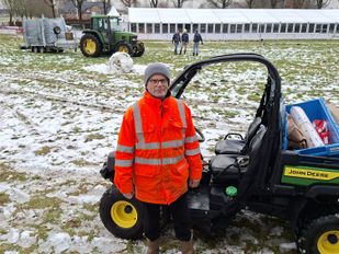 De sneeuw kleurt de flanken van de Tiestenduin in Huijbergen vrijdagochtend nog altijd wit, maar toch is er volop bedrijvigheid rondom de Weg naar Wouw. Zo ook bij Ivo, die zoveel mogelijk hekken langs het parcours aan het voorzien is van spandoeken. “Het zijn hectische laatste dagen voor het NK Veldrijden van start gaat. Ik wilde vrijdagmiddag eigenlijk nog een training op het parcours rijden, maar dat zit er door de drukte helaas niet in”, vertelt hij.