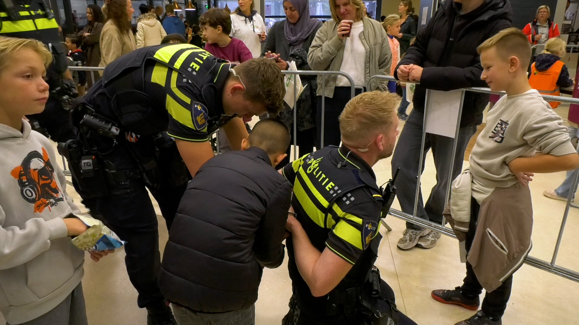 De kinderen krijgen van de agenten demonstraties. “We laten zien hoe we mensen boeien en laten onze uitrusting aan ze zien.” De aanwezige kinderen vinden het erg gaaf. Zo gaaf dat er zelfs een hele rij staat om in de boeien geslagen te worden.