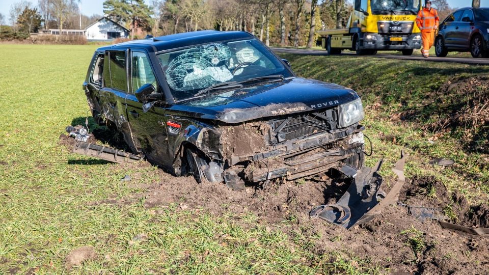 Het slachtoffer is met een ambulance naar het ziekenhuis gebracht. Brokstukken van de auto lagen verspreid op de weg en in het weiland. Het is onduidelijk hoe het ongeluk precies kon gebeuren.