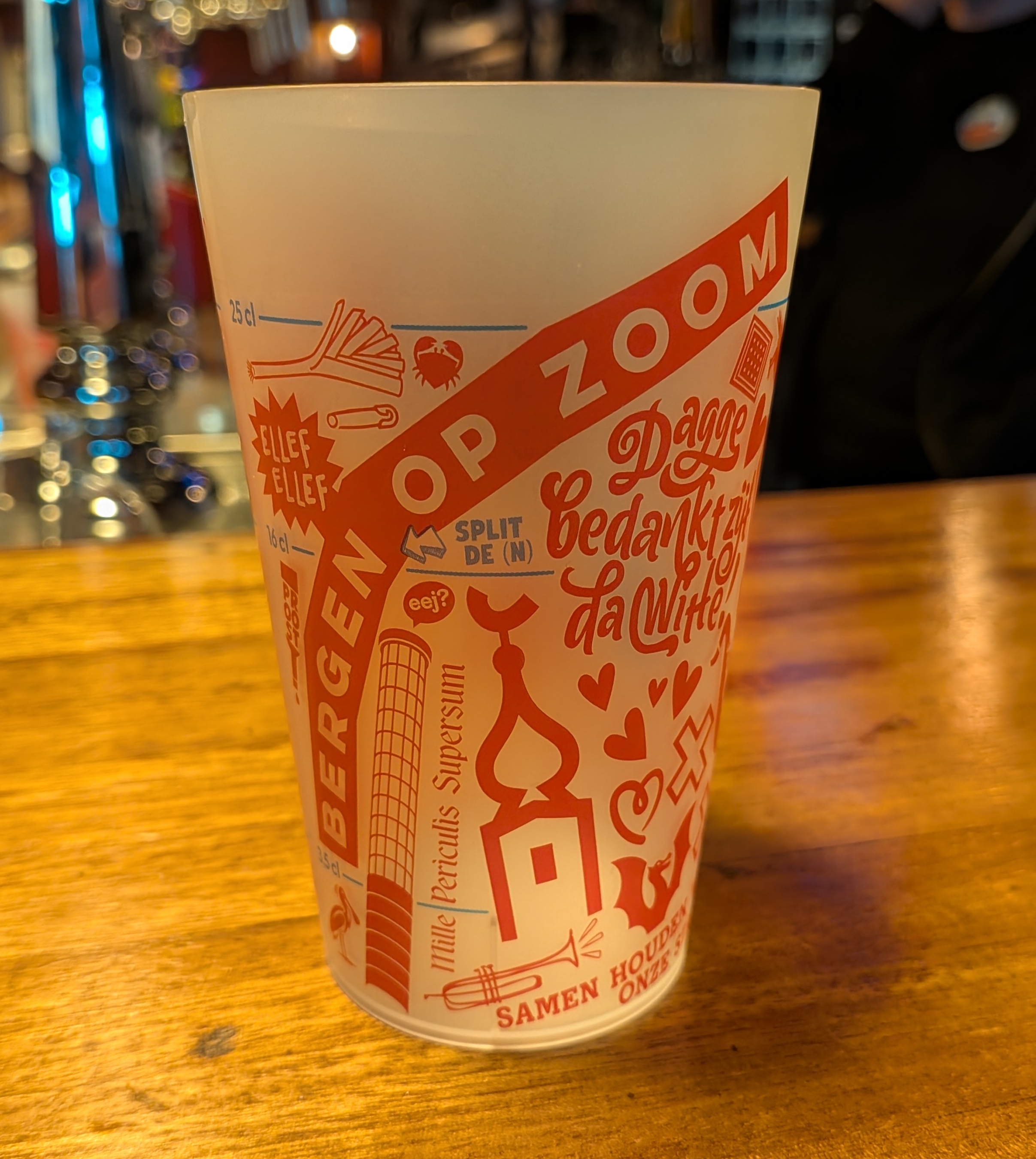 Vergeet de dunne knijpbekertjes van vroeger. De nieuwe bekers zijn stevig en speciaal ontworpen voor intensief hergebruik. “Dit zijn niet die glanzende, harde polycarbonaatbekers van jaren geleden”, verduidelijkt Niek. “Deze zijn semi-transparant en wat troebel door het sterke materiaal.” De bekers zijn wat minder stug maar wel vaatwasserbestendig. Ze worden zelfs geregeld met stoom gereinigd, wat ze hygiënisch en perfect maakt voor jarenlang plezier.