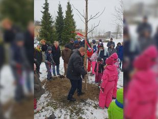 · Onder barre weersomstandigheden verzamelden zaterdagochtend zestig mensen zich om de eerste boom van de plukroute te planten op de Bergse…