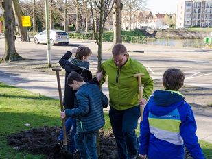 · De groepen zeven van basisschool De Grebbe in Bergen op Zoom hebben woensdag de Lorkstraat vol geplant met verschillende bomen.