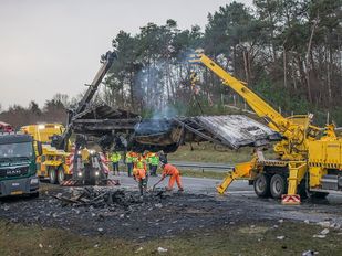 Schoonmaken snelweg na uitbranden vrachtwagen immense klus