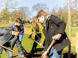 · Leerlingen van groep 8 van basisschool Sancta Maria en wethouder Patrick van der Velden hebben woensdag tijdens de Nationale Boomfeestdag…