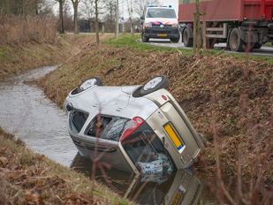 · Zaterdagmiddag is een auto op zijn kop in een sloot beland in het buitengebied van Lepelstraat. De bestuurder is gewond…