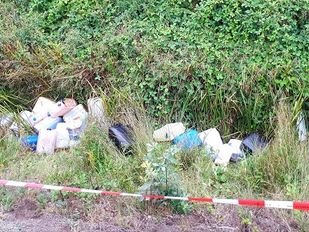 · In het buitengebied van Wouwse Plantage zijn dinsdag ongeveer 30 jerrycans met drugsafval gevonden. Dat meldt Handhaving Roosendaal op Twitter.
