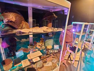 · In verschillende vitrinekasten zijn onderdelen terug te zien van neergestorte vliegtuigen en bommen, allemaal geland in en rondom de gemeente Woensdrecht.